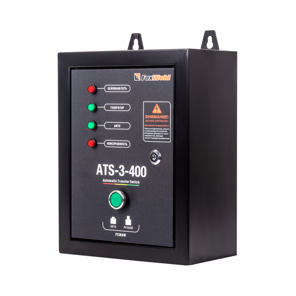 Блок автоматики Foxweld ATS (380V) специально разработан для совместного использования c бензиновыми генераторами Foxweld серии Expert, имеющими соответствующую подготовку для его подключения. ATS-3-400 рассчитано на подключение к трёхфазной силовой линии генераторов Expert (~3; 400 В; 50 Гц) c максимально допустимой нагрузкой до 8 кВт. Устройство автоматического ввода резерва ATS (от англ. Automatic Transfer Switch) предназначено для автоматического запуска генератора в случае сбоя или прекращения подачи электроэнергии и обратного переключения нагрузки на внешнюю сеть при налаживании её рабочих параметров. При возникновении нестабильности рабочих параметров или исчезновении питания, блок автоматического управления подключит генератор, не дожидаясь команды оператора. При возобновлении централизованного энергоснабжения производится обратное автоматическое переключение нагрузки с генераторной установки на питание от электросети с остановкой двигателя. Генератор переходит в режим готовности к запуску.ПРЕИМУЩЕСТВА:Высокий запас по мощности – максимальная нагрузка до 8 кВтОбеспечивает бесперебойную работу электросетиПолностью автоматизированная работаРассчитано на широкий диапазон рабочих температурЭлектрические компоненты устройства в защищенном металлическом корпусеВозможность настенного монтажаКОМПЛЕКТАЦИЯ: Блок автоматики FoxWeld ATS (380V) – 1 шт.; Кабель управления 8 pin – 1 шт.; Комплект из 2х ключей для щита ATS – 1 шт.; Инструкция по эксплуатации + Гарантийный талон – 1 компл.*Производитель оставляет за собой право менять комплектацию оборудования.