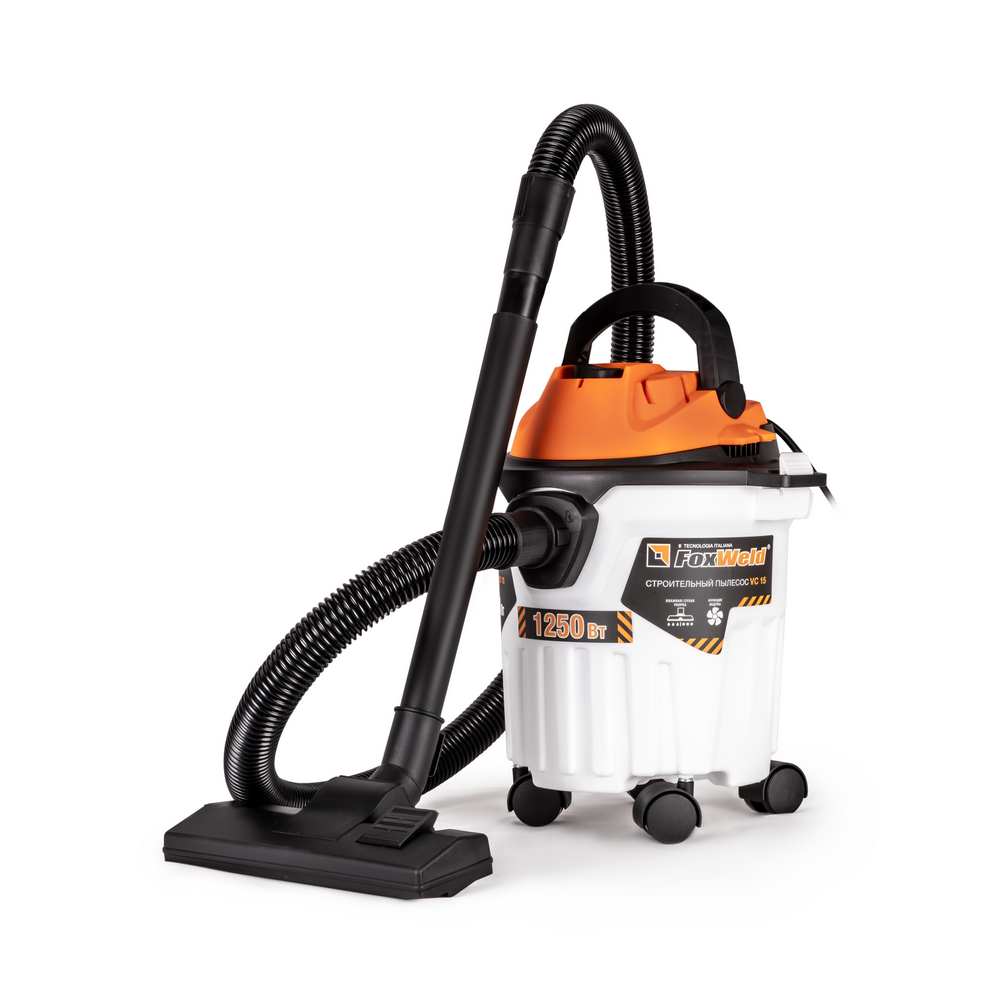 Строительный пылесос FOXWELD VC-15 отлично подходит для уборки после проведения ремонтных и строительных работ. Модель VC-15 используется для сбора сухого и влажного мусора. Это могут быть не только бытовые загрязнения, но и пыль класса М – частицы извести, мела, пыль от меди, жести, никеля, древесины. Мощная функция обдува позволяет очистить рабочее место от опилок, стружки, строительной пыли, сдуть листву с дорожек и даже прочистить водосток или канализацию. Строительный пылесос также позволяет эффективно собирать негорючую жидкость с любой поверхности, а щелевая насадка облегчает уборку узких участков.СБОР НЕГОРЮЧЕЙ ЖИДКОСТИ: Специальная функция сбора жидкости предназначена для эффективной уборки растворов, суспензий и воды с любой поверхности.ФУНКЦИЯ ОБДУВА: Функция обдува позволяет очистить рабочее место и поверхности от опилок, стружки, строительной пыли, сдуть листву с дорожек, прочистить водосток или канализацию.КОНТРОЛЬ ЗАПОЛНЕНИЯ КОНТЕЙНЕРА: На определённом уровне заполнения бака происходит автоматическая остановка всасывания для предотвращения попадания жидкости, грязи, пыли и другого мусора в двигатель пылесоса.КРОНШТЕЙН ДЛЯ КРЕПЛЕНИЯ АКСЕССУАРОВ: Шланг с трубой или составные части трубы можно быстро и легко закрепить на корпусе пылесоса в процессе уборки или для длительного хранения с помощью специального съёмного кронштейна.ПРЕИМУЩЕСТВА:Губчатый фильтр и мешок-пылесборник уже установлены в пылесосеГубчатый (поролоновый) фильтр защищает двигатель пылесоса от загрязнения и влаги в виде капель и пены при влажной уборкеТканевый промежуточный фильтр увеличенной площади улучшает фильтрацию воздушного потока и снижает нагрузку на остальные элементы фильтрующей системыМешок-пылесборник для сухой уборки обеспечивает дополнительный уровень очисткиВсе аксессуары можно хранить непосредственно на самом пылесосе – насадки вставляются в специальные отверстия на корпусеСпециальные крепления на корпусе для фиксации кабеля, предотвращающие его спутывание во время храненияПластиковый бак не подвержен коррозии и устойчив к механическим воздействиямТрёхсекционная пластиковая трубаЩётка «пол/ковёр» с клавишей переключенияЩелевая насадка для сбора пыли в труднодоступных местахФУНКЦИОНАЛЬНЫЕ ОСОБЕННОСТИ:ГУБЧАТЫЙ ФИЛЬТР: Дополнительный губчатый фильтр защищает двигатель пылесоса от загрязнения и попадания в него брызг во время всасывания жидкостей.КОМПЛЕКТАЦИЯ: Строительный пылесос VC 15 – 1 шт.; Всасывающий пластиковый шланг – 1 шт.; Всасывающая труба – 3 шт.; Щётка «пол/ковёр» с клавишей переключения – 1 шт.; Щелевая насадка – 1 шт.; Кронштейн для крепления аксессуаров – 1 шт.; Колёса – 4 шт.; Бумажный мешок – 1 шт.; Инструкция + Гарантийный талон – 1 компл.*Производитель оставляет за собой право менять комплектацию оборудования.