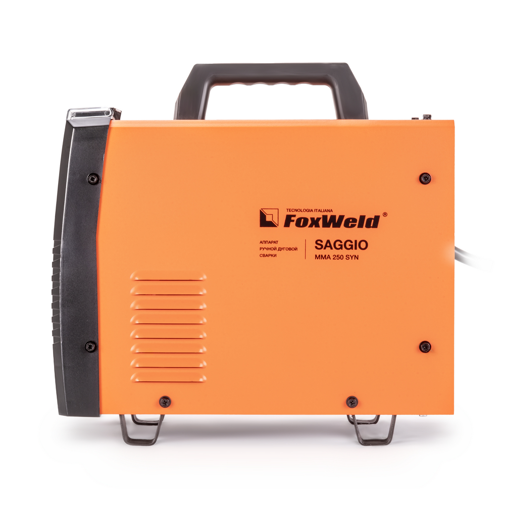 Сварочный аппарат SAGGIO ММА 250 SYN с синергетическим режимом управления предназначен для ручной дуговой сварки (ММА) любыми типами электродов и выполнен по новейшей IGBT технологии, позволяющей добиться минимального веса и габаритов. SAGGIO ММА 250 SYN отличается надёжностью, хорошими техническими характеристиками, имеет программно-установленные функции AntiSticking (антизалипание), регулируемые Нot Start (горячий старт) и Arc Force (форсаж дуги), и устойчиво работает при понижении напряжения сети, что делает аппарат более универсальным и практичным. Синергетическая система управления позволяет легко и быстро настроить аппарат по диаметру сварочного электрода. Дополнительный режим TIG LIFT позволяет проводить аргонодуговую сварку на постоянном токе изделий из черной и нержавеющей стали, меди, титана, чугуна. Данный вид сварки характеризуется отсутствием брызг и более презентабельным внешним видом сварного шва. Для проведения аргонодуговой сварки необходимо дополнительно приобрести горелку с вентилем, баллон с газом и присадочную проволоку.МНОГОФУНКЦИОНАЛЬНОСТЬ 2-В-1: Помимо ручной дуговой сварки (MMA), вторым режимом работы аппарата SAGGIO ММА 250 SYN является сварка вольфрамовым электродом TIG LIFT, что позволяет проводить аргонодуговую сварку на постоянном токе изделий из черной и нержавеющей стали, меди, титана, чугуна. Данный вид сварки характеризуется отсутствием брызг и более презентабельным внешним видом сварного шва. Для проведения аргонодуговой сварки необходимо дополнительно приобрести горелку с вентилем (артикул 2586).СИНЕРГЕТИЧЕСКИЙ РЕЖИМ УПРАВЛЕНИЯ: Режим синергетики позволяет сэкономить время и получить качественное сварное соединение даже новичку, так как основные параметры подбираются автоматически с возможностью тонкой ручной подстройки сварочного процесса. Синергетику можно отключить для работы в ручном режиме.ИНФОРМАТИВНАЯ ПАНЕЛЬ УПРАВЛЕНИЯ: Удобная настройка режимов сварки с помощью информативной панели управления и LCD экрана. В аппарате большое количество функций и опций, которые настраиваются с помощью специальных кнопок. На цифровом дисплее отображаются действующие значения сварочного тока и напряжения в процессе сварки и параметры сварки в режиме настройки.СНИЖЕНИЕ НАПРЯЖЕНИЯ ХОЛОСТОГО ХОДА: Функция VRD (снижение напряжения холостого хода) повышает безопасность и исключает риск поражения сварщика электрическим током. Сварочный процесс становится более безопасным в замкнутых пространствах и при сварке в условиях повышенной влажности.РАЗЪЁМ ДУ: Инвертор имеет возможность подключения пульта дистанционного управления, что позволяет регулировать сварочный ток непосредственно вблизи проведения сварочных работ даже при большой длине сварочных кабелей.ПРЕИМУЩЕСТВА:Профессиональная реализация всех трёх сервисных функционалов: Antisticking (Антизалипание), регулируемые Hot Start (Горячий старт) и Arc Force (Форсаж дуги)Большой экран с чётким отражением параметров сваркиБайонеты профессионального уровня размером 35-50Мощный и производительный вентиляторРежим TIG LIFTИнвертор на транзисторах IGBTВоздушное охлаждениеРабота при пониженном напряженииФУНКЦИОНАЛЬНЫЕ ОСОБЕННОСТИ:РЕЖИМ MMA: Работает с входным напряжением от 150 до 270 вольт;Может работать с диаметром покрытого электрода до 5 мм;Выставляется ток сварки от 20 до 250 ампер;Аппар