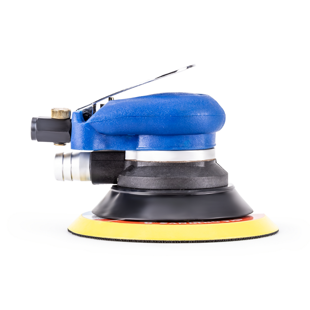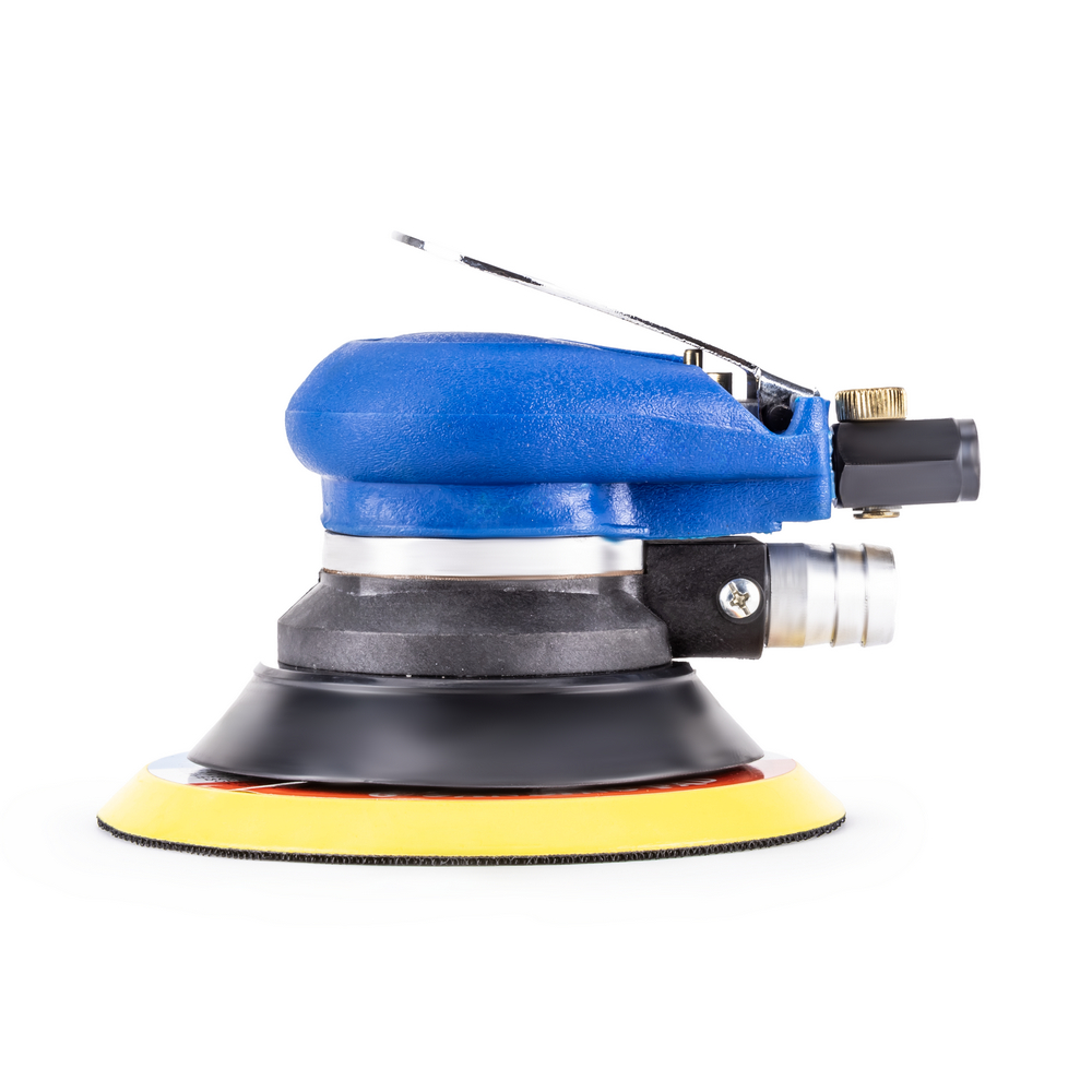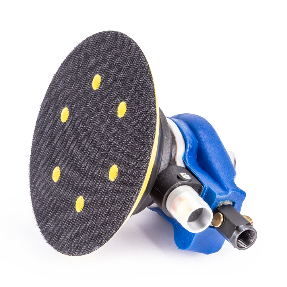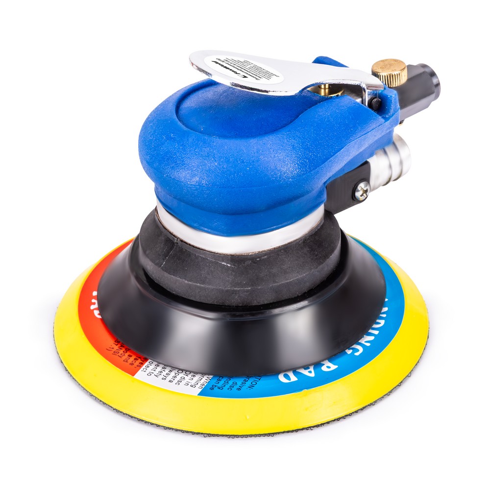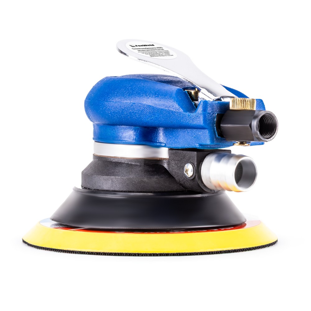 Пневматическая эксцентриковая шлифовальная машина или пневмошлифмашина AERO 6,3/150 предназначена для качественной обработки поверхностей (дерево, пластмасса или металл), перед покраской или покрытием лаком. Шлифмашина позволяет быстро очищать, как выпуклые, так и плоские поверхности, исключая появление царапин и обеспечивая равномерность обработки. Изделие имеет регулировку скорости воздушного потока что весьма удобно при обработке поверхностей из различного материала и работе с кругами с разным типом зернистости. Рабочим инструментом шлифмашины является пластиковый диск с липучкой (опорная тарелка), на который крепится шлифовальный круг. AERO 6,3/150 рассчитана на установку шлифовальных кругов увеличенного диаметра 150 мм и работает от воздушного компрессора, с рабочим давлением в 6,3 бар и расходом воздуха - 141 л/мин. AERO 6,3/150 развивает при этом максимальную скорость вращения в 10 000 об/мин при ходе эксцентрика в 2,4 мм и амплитуде колебаний 5 мм. Для удобного и надежного подключения оснащается быстросъемным соединением Rapid M. Изделие оснащено интегрированным пылеотводом включающим в себя шланг длиной 1,2 м и диаметром 20 мм и тканевый мешок для сбора пыли. Корпус изделия изготовлен из ударопрочного алюминия, а рукоятка оснащена прорезиненной оболочкой с помощью которой осуществляется хорошее удержание инструмента и низкий уровень вибраций.