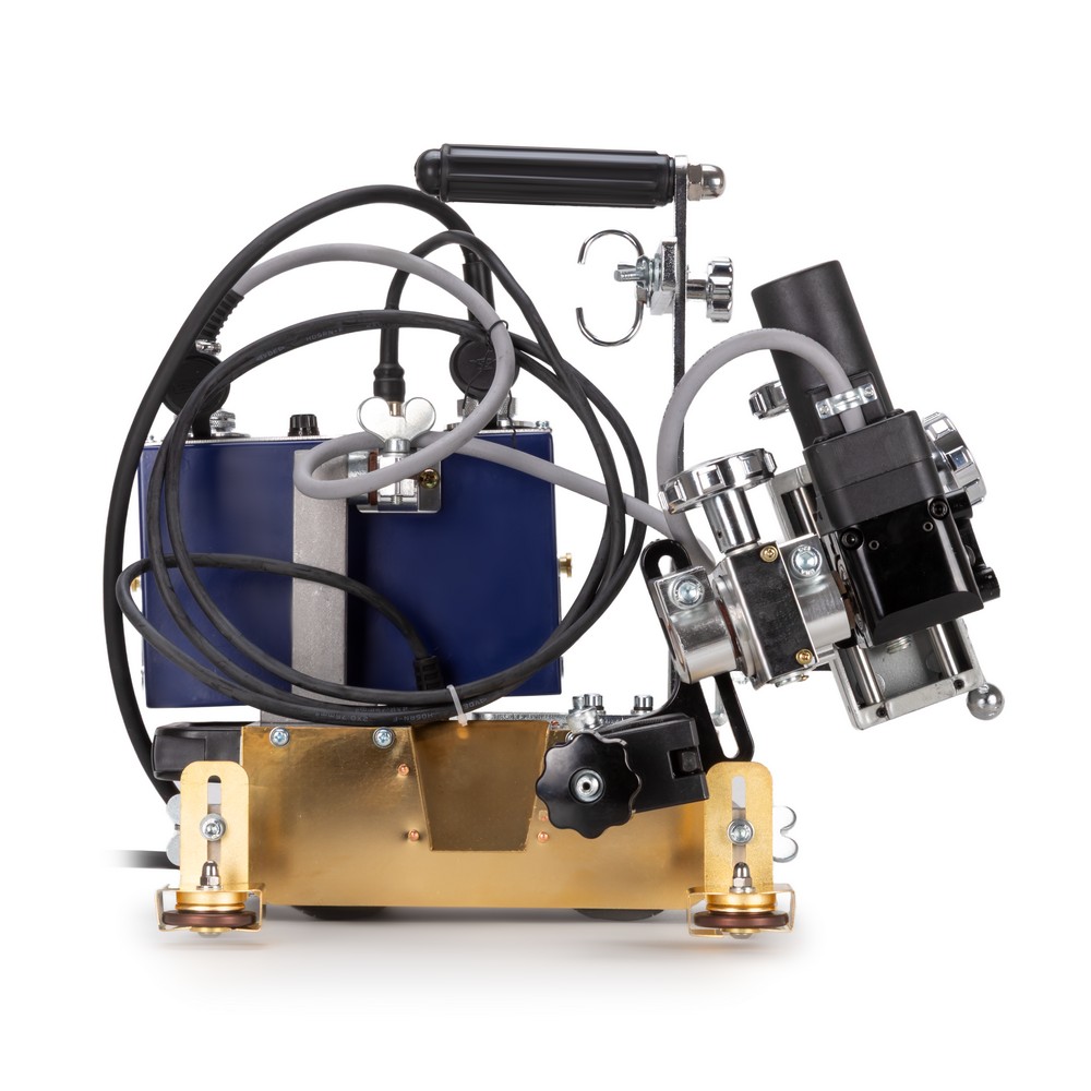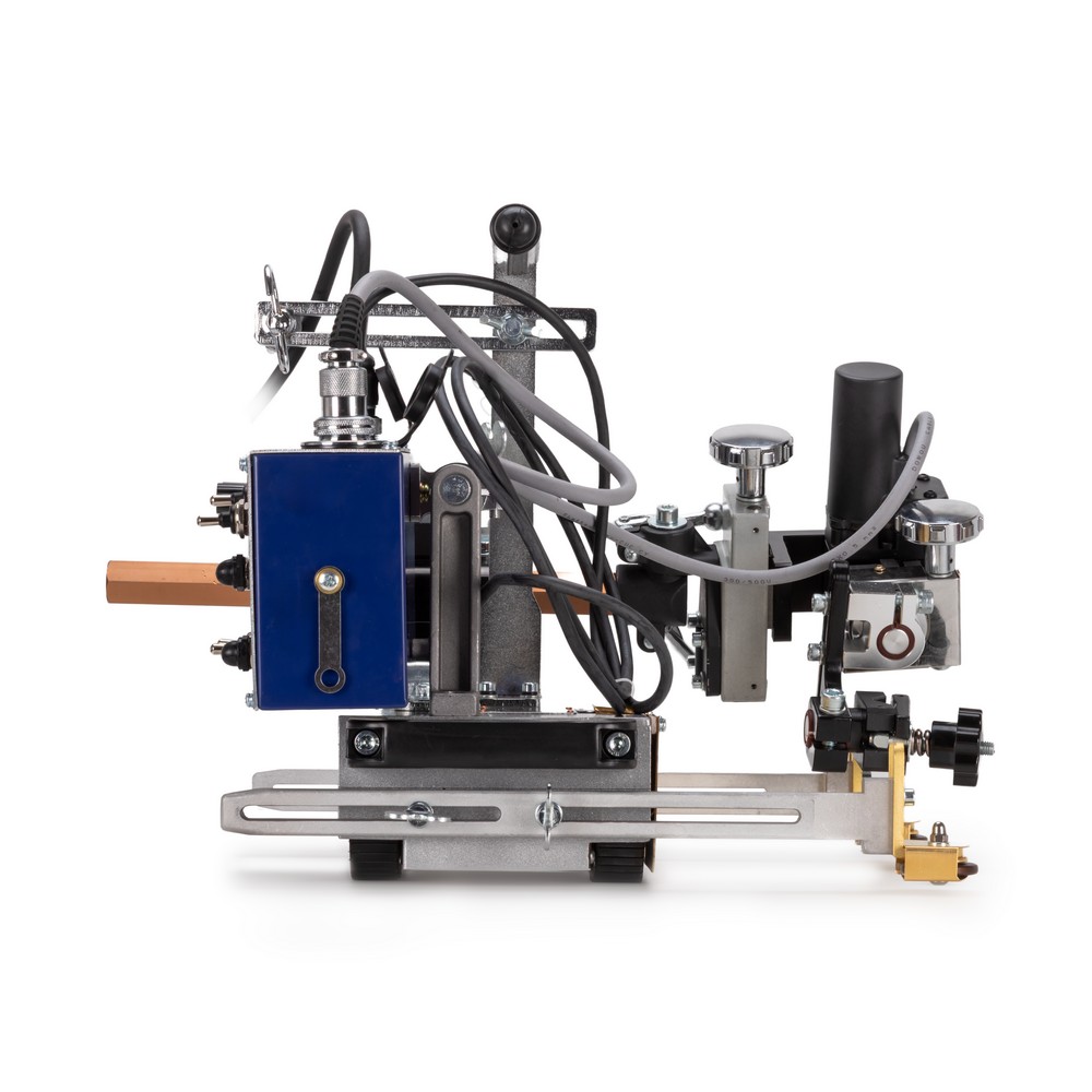 Каретка сварочная VECTOR КС-5 применяется для сварки угловых соединений в нижнем положении, в том числе способом «в лодочку», без разделки или с V-образной разделкой кромок. Каретка повышает эффективность работы по сравнению со сваркой, производимой вручную сварщиком. Процесс сварки полностью автоматизирован, что гарантирует высокое качество свариваемых соединений. Применение сварочной каретки дает возможность понизить требования к квалификации персонала на сварочном производстве. Управлять кареткой могут даже работники с низкой квалификацией. VECTOR КС-5 позволяет сократить количество брака, связанного с воздействием человеческого фактора. Сварочная горелка устанавливается в средней части каретки. Наплавка металла может производиться при продольном перемещении каретки в обоих направлениях. Сварочную каретку VECTOR КС-5 можно использовать во многих отраслях производства, таких как судостроение, мостостроение, изготовление стальных конструкций, нефтяная промышленность и т.д.МЕХАНИЗАЦИЯ СВАРОЧНОГО ПРОЦЕССА: Уникальность каретки заключается в том, что после соответствующих настроек она может производить сварочный процесс в нескольких пространственных положениях вместо человека. Процесс сварки полностью автоматизирован, что гарантирует высокое качество свариваемых соединений. Применение сварочной каретки даёт возможность понизить требования к квалификации персонала на сварочном производстве. Управлять кареткой могут даже работники с низкой квалификацией.ВЫСОКАЯ ЭФФЕКТИВНОСТЬ: Во время длительного сварочного процесса, особенно при сварке длинных швов, рука сварщика постепенно устаёт, что влияет на качество шва и скорость работы. При использовании сварочной каретки проблемы со скоростью и качеством практически отсутствуют, что значительно повышает эффективность сварочного производства.МОБИЛЬНОСТЬ: Компактные габариты, незначительный вес и полноприводные колёса, а также полная автоматизация позволяют работнику с низкой квалификацией выполнить сварку качественнее высококлассного специалиста на обычном сварочном аппарате.РАБОТА В ВЕРТИКАЛЬНОМ ПОЛОЖЕНИИ: Нижняя часть сварочной каретки оборудована мощным магнитом и 4мя полноприводными колёсами, что позволяет производить сварочный процесс не только в горизонтальном, но и в вертикальном положении. Минимальная толщина металла для вертикальной сварки – 6 мм.НЕБОЛЬШОЙ ВЕС: Малый вес и небольшие размеры позволяют легко переносить и устанавливать каретку в различных местах.ПРЕИМУЩЕСТВА:Простая и интуитивно понятная панель управления6 цифровых дисплеевВыбор траектории колебания (5 режимов)Блок корректировки положения сварочной горелкиГенератор колебаний (линейный осциллятор)Мощный магнит для работы в вертикальном положении (при толщине металла от 6 мм)Регулировка сварочного токаРегулировка сварочного напряженияРежим протяжки проволокиЭргономичные ручки для переноски и позиционированияДержатель сварочного кабеляПривод на каждое колесоРегулировка скорости движенияРегулировка угла поворотаПереключатель частоты колебаний4 полноприводных колесаФУНКЦИОНАЛЬНЫЕ ОСОБЕННОСТИ:ИНФОРМАТИВНАЯ ПАНЕЛЬ УПРАВЛЕНИЯ: 6 цифровых дисплеев отображают значения параметров настройки каретки. На панели управления также расположены индикатор питания, ручки регу