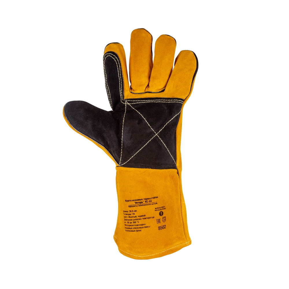 Краги кожаные термостойкие Foxweld "Янтарь" КС-04 надежно защищают руки от искр и брызг расплавленного металла при проведении сварочных работ. Термостойкие краги Янтарь имеют усиленную внутреннею часть ладони и изготовлены из натуральной кожи. Спилковые краги прошиты огнеупорными и прочными кевларовыми нитками.УСИЛЕННАЯ РАБОЧАЯ ЧАСТЬ: Усиленная спилковая накладка в области ладони и большого пальца добавляет прочности и обеспечивает эффективную защиту от открытого огня, искр и брызг раскалённого металла.УСИЛЕННАЯ ТЕПЛОЗАЩИТА: Ладонная часть краг выполнена из жаропрочного кожевенного спилка. Швы прошиты прочной огнестойкой нитью, что обеспечивает высокую устойчивость к воспламенению, конвективному теплу, тепловому излучению и большому выбросу расплавленного металла.КЕВЛАРОВЫЕ НИТИ: Швы прошиты прочной огнестойкой нитью Kevlar, что придаёт дополнительную прочность и защищает руки при сварочных работах.ПРЕИМУЩЕСТВА:Усиленная рабочая частьУсиленная теплозащитаЗащита от тепла и ожоговЗащита от искр и испаренийНить Kevlar