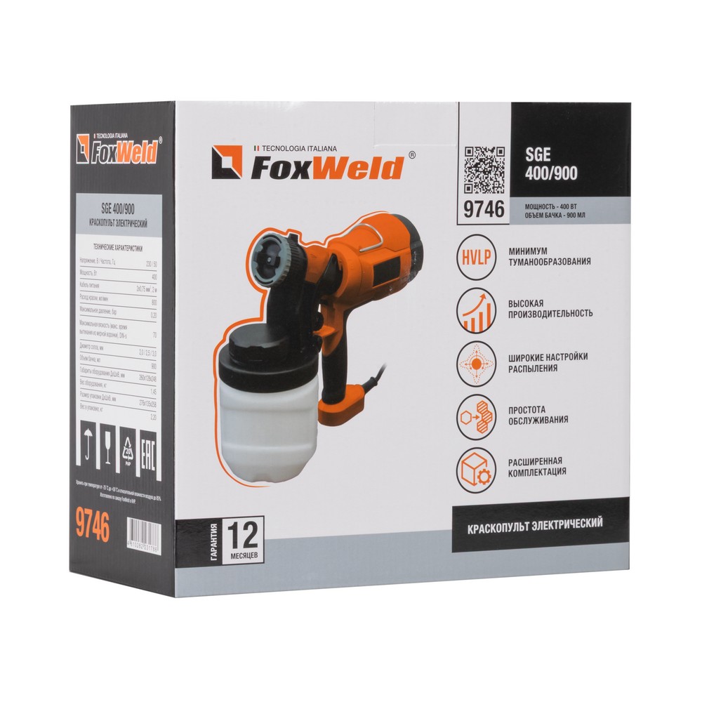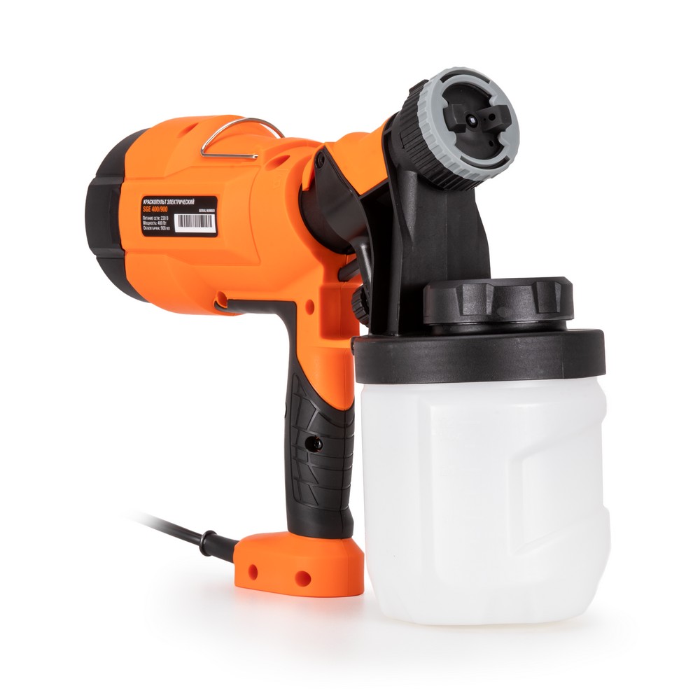 Краскопульт электрический SGE 400/900 предназначен для равномерного и быстрого нанесения лакокрасочных материалов на различные поверхности. Это удобный инструмент для широкого спектра покрасочных работ, обеспечивающий высокое качество покрытия и значительно экономящий время. Краскопульт также удобен для окрашивания больших площадей и для работ в труднодоступных местах и на рельефных поверхностях. Для создания потока большого объёма воздуха в изделие встроен компрессор. Вырабатываемый им воздух нагнетается в бачок и выдавливает лакокрасочные материалы через сопло. Краскопульты имеют широкое применение в профессиональной и бытовой областях: в строительстве и ремонте (покраска стен, потолков, полов, фасадов зданий, заборов, крыш); в автомобильной промышленности (покраска кузовов и других деталей, нанесение антикоррозийных составов); в других областях (покраска мебели, бытовой техники, окраска элементов интерьера, в сельском хозяйстве для обработки растений).МИНИМУМ ТУМАНООБРАЗОВАНИЯ: Технология HVLP (High Volume Low Pressure) означает большой объём и низкое давление. Это наиболее современная, экономичная и экологичная система нанесения лакокрасочных материалов методом распыления. Распыление достигается за счёт объёма воздуха, а не за счёт его высокого давления, что снижает скорость движения струи, создавая более мягкое распыление.ВЫСОКАЯ ПРОИЗВОДИТЕЛЬНОСТЬ: Благодаря большой мощности краскопульт позволяет быстро покрывать большую площадь и работать с густыми материалами.ШИРОКИЕ НАСТРОЙКИ РАСПЫЛЕНИЯ: Регулируемая насадка обеспечивает 3 типа распыления: вертикальное, горизонтальное, круговое. Регулировка формы факела позволяет добиться профессионального качества покраски, экономии материалов и повышения эффективной работы.ПРОСТОТА ОБСЛУЖИВАНИЯ: Лёгкость снятия деталей облегчает разборку и промывку корпуса краскопульта, а также чистку труднодоступных каналов, фильтра и рабочих деталей. Удобство использования и чистки обусловлено тщательно продуманной конструкцией пистолета-распылителя. Простая замена сопла позволяет быстро адаптировать краскопульт к новым задачам.РАСШИРЕННАЯ КОМПЛЕКТАЦИЯ: Для универсальности использования модель поставляется с комплектом из нескольких сопел и инструментами для чистки. Это позволяет избежать необходимости приобретения нескольких краскопультов для различных видов работ. Для измерения вязкости в комплекте поставляется измерительная воронка (вискозиметр).ПРЕИМУЩЕСТВА:Большая мощностьВысокая производительностьТехнология HVLPТри типа распыления: вертикальное, горизонтальное и круговоеРегулировка ширины факелаРегулировка количества распыляемого материалаУдобный резервуар для лакокрасочных материаловЭргономичная рукояткаРазвернутый угол рукояткиИзносостойкий пластик корпуса и составляющихЛегкий весБыстроразъёмная конструкцияФиксирующий рычагДополнительные сопла, измерительная воронка и инструменты для чистки в комплектеФУНКЦИОНАЛЬНЫЕ ОСОБЕННОСТИ:НЕБОЛЬШОЙ ВЕС: Лёгкий вес снижает нагрузку на руку оператора, что позволяет дольше работать без усталости, особенно при покраске больших поверхностей или при работе на высоте. Также позволяет легко маневрировать и достигать труднодоступных мест.КОМПЛЕКТАЦИЯ: Пистолет-распылитель с резервуаром – 1 компл.; Базовый б
