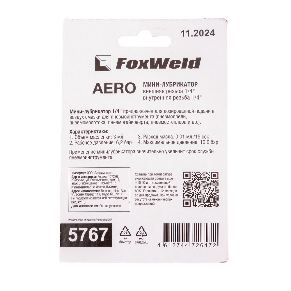 Мини-лубрикатор 1/4" предназначен для дозированной подачи смазки в воздушную магистраль для пневмоинструмента: пневмодрели, пневмомолотка, пневмогайковерта, пневмостеплера и т.п. Что позволяет снизить трение подвижных деталей и механизмов и продлить срок службы инструмента.