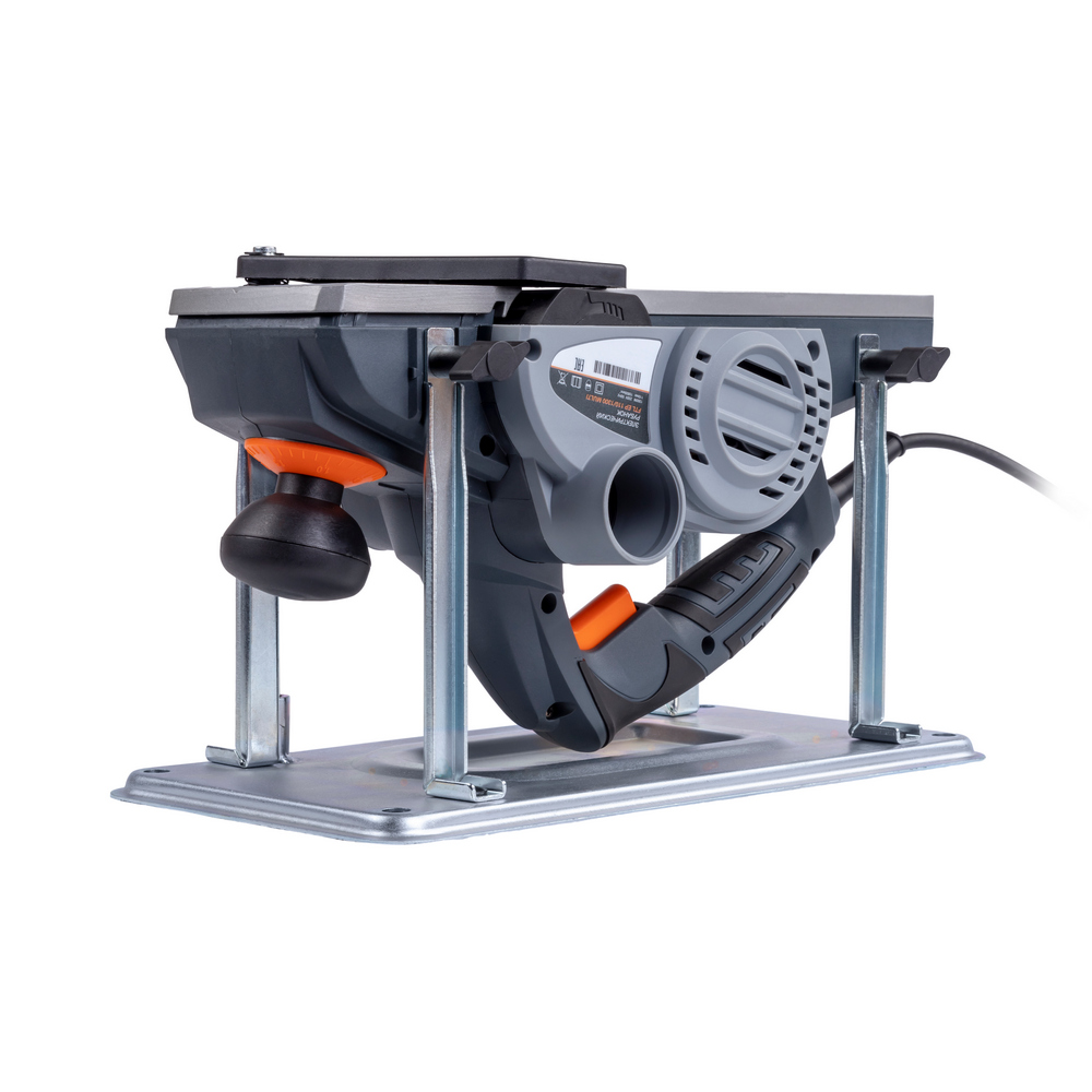 Электрорубанок сетевой FTL EP 110/1300 Multi - профессиональный деревообрабатывающий инструмент для строгания с помощью ножей на встроенном барабане. Данная модель имеет подставку для стационарного крепления, которая позволяет при необходимости закрепить рубанок ножами вверх и использовать его как строгальный станок. Мощный электродвигателем в 1300 Вт обеспечивает вращение барабана со скоростью в 15 800 об/мин. Барабан оснащается двумя односторонними ножами шириной 110 мм. Высокое качество строгания гарантируется за счет опорной плиты из алюминия, которая обеспечивает плавное и ровное строгание, а также регулировкой глубины строгания 0 - 3 мм и тремя V-образными пазами для скашивания кромок. Возможность использования электрорубанка в качестве строгального станка и функция выборки четверти с максимальной глубиной в 14 мм расширяет спектр выполнения задач инструмента. Модель имеет интегрированный патрубок для выдува стружки. Наличие фиксатора выключателя в паре с кронштейном для стационарного крепления позволяет зафиксировать клавишу выключателя в положении "включено" для продолжительной работы. В свою очередь, функция защиты от случайного включения и прорезиненная рукоятка обеспечивают надежное удержание инструмента и низкий уровень вибраций при ручной работе и гарантируют безопасность и надежность выполняемой работы.