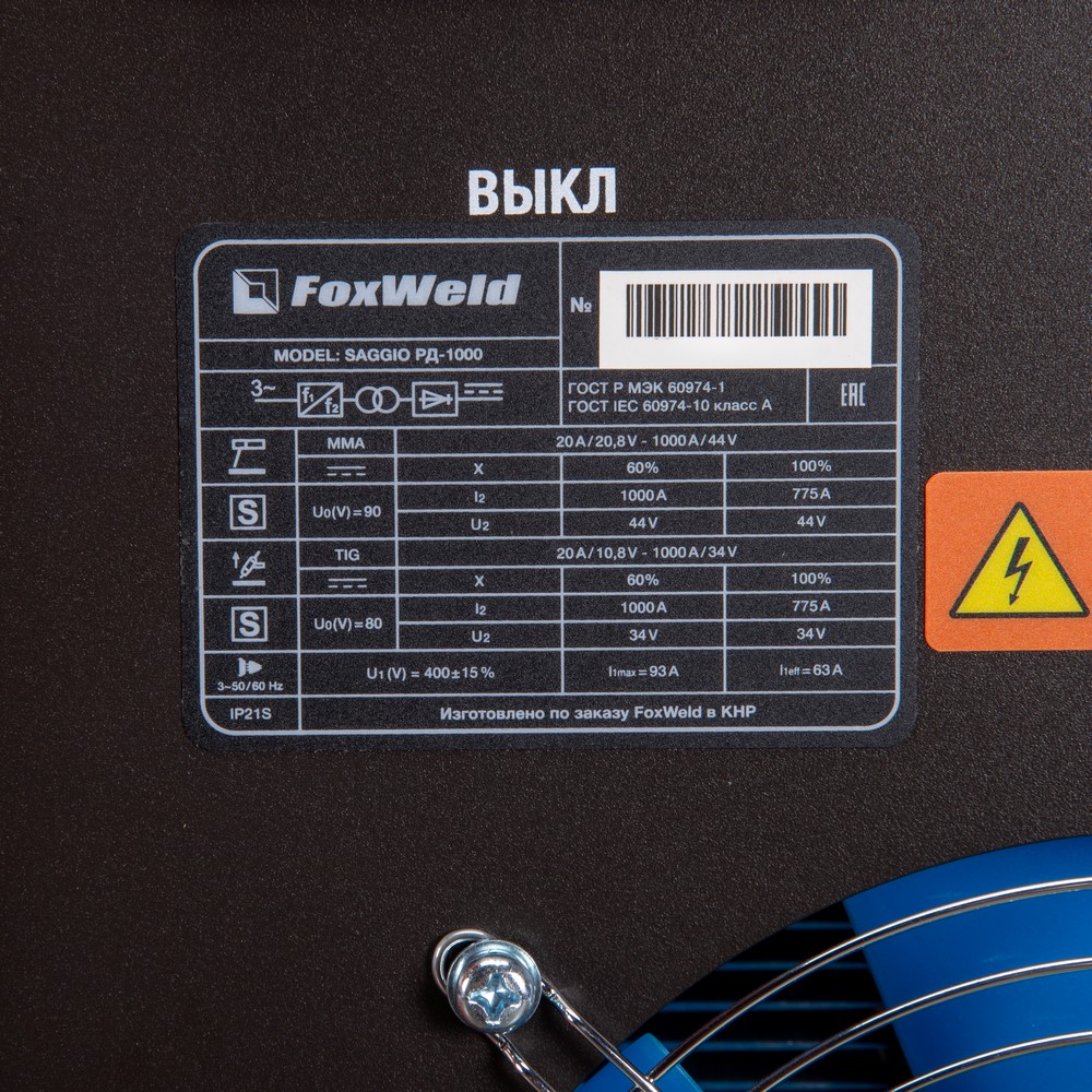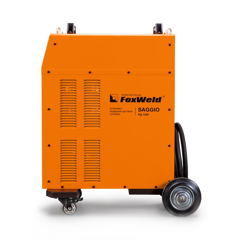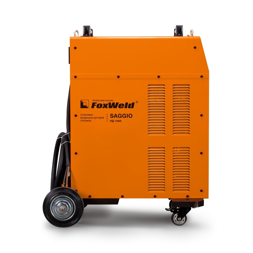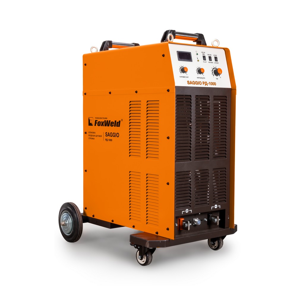SAGGIO РД-1000 – многофункциональная трёхфазная установка инверторного типа, предназначенная для воздушно-дуговой строжки (ARC AIR), ручной дуговой сварки (ММА), а также аргонодуговой сварки на постоянном токе (TIG LIFT). Ручки регулировки сварочного тока и встроенных функций Arc Force (форсаж дуги) и Hot Start (горячий старт) на панели управления позволяют легко настроить установку под конкретные задачи. Функция VRD (снижение напряжения холостого хода) повышает безопасность и исключает риск поражения сварщика электрическим током. К аппарату можно подключить пульт дистанционного управления, который идёт в комплекте. SAGGIO РД-1000 оборудован тележкой на колёсах.МНОГОФУНКЦИОНАЛЬНОСТЬ 3-В-1: Установка воздушно-дуговой строжки может работать в трёх режимах: воздушно-дуговой строжки (ARC AIR), ручной дуговой сварки (ММА), а также аргонодуговой сварки на постоянном токе (TIG LIFT).ВЫСОКАЯ ПРОИЗВОДИТЕЛЬНОСТЬ: Большой сварочный ток, ПВ 60% на максимальном токе, мощная установка с максимальным сварочным током 1000 А, КПД 85% — всё это обеспечивает эффективность и повышает производительность сварочного процесса.СНИЖЕНИЕ НАПРЯЖЕНИЯ ХОЛОСТОГО ХОДА: Функция VRD (снижение напряжения холостого хода) повышает безопасность и исключает риск поражения сварщика электрическим током. Сварочный процесс становится более безопасным в замкнутых пространствах и при сварке в условиях повышенной влажности.ПУЛЬТ ДУ: К установке можно подключить пульт дистанционного управления (идёт в комплекте), что позволяет регулировать сварочный ток непосредственно вблизи проведения сварочных работ, создавая условия для получения максимального качества сварного шва.ПОДКЛЮЧЕНИЕ 400 В: Подключение к трёхфазной сети питания 400 вольт увеличивает эффективность установки воздушно-дуговой строжки (сварочный ток, расход электроэнергии).ПРЕИМУЩЕСТВА:Большой сварочный токЦифровой дисплейРегулируемая функция Горячий стартРегулируемая функция Форсаж дугиФункция АнтизалипаниеПлавная регулировка сварочного токаРежим TIG LIFTФункция VRDИнвертор на транзисторах IGBTУдобная эксплуатацияУвеличенный срок службыКОМПЛЕКТАЦИЯ: Установка воздушно-дуговой строжки SAGGIO РД-1000 – 1 шт.; Сетевой кабель 3,5 м (3х16+1х1) – 1 шт.; Клемма заземления типа струбцина – 1 шт.; Обратный кабель 70 мм², 8 м – 2 шт.; Пульт дистанционного управления – 1 шт.; Комплект платформы с 4-мя колёсами и болтами – 1 шт.; Инструкция по эксплуатации + Гарантийный талон – 1 компл.*Производитель оставляет за собой право вносить изменения в комплектацию оборудования без предварительного уведомления покупателя.